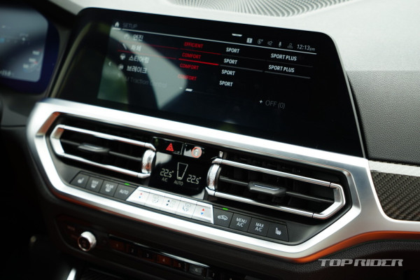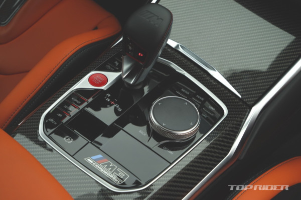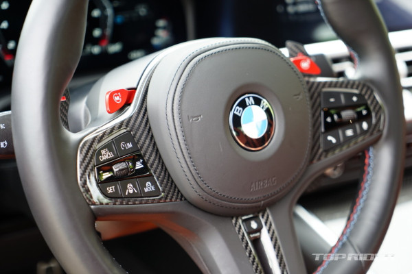 M 가죽 스티어링 휠과 대시보드, 센터콘솔 등은 카본 소재로 마감됐다. 시프트 패들도 카본으로 제작됐다. 스티어링 휠에는 M 버튼이 배치됐다. 선호하는 엔진과 섀시, 스티어링, 브레이크 시스템 셋업 등 설정을 저장해 사용할 수 있다. 전자식 기어레버는 다소 불만이다.