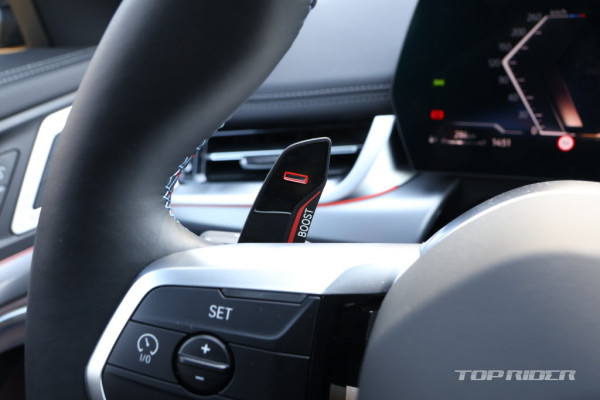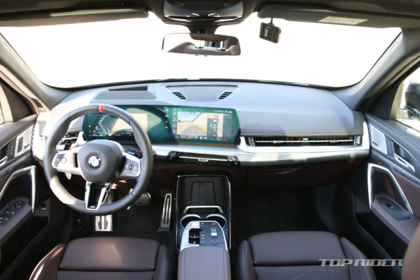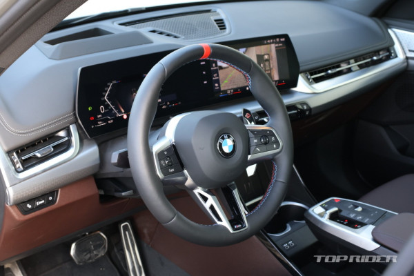 X1 M35i xDrive는 M 레더 스티어링 휠, M 도어 실 트림, M 페달 등 BMW M 특유의 감성이 강조됐다. 스티어링 휠 중앙 상단부는 레드 포인트가 추가됐으며, 다른 부분보다 얇게 설계돼 어떠한 시트 포지션에서도 디지털 계기판을 가리지 않는다. 국산차 일부는 가려진다.