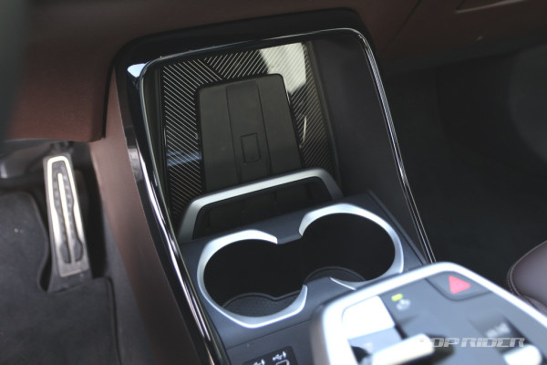 센터콘솔에는 스마트폰을 똑바로 세울 수 있는 무선 충전 시스템이 배치됐다. C타입 USB 포트를 제공한다. 콤팩트하게 변경된 전자식 기어레버는 불만이다. BMW 중 특히 고성능 모델은 기존 전자식 기어레버가 어울린다. 또한 1열 통풍 시트와 2열 열선 시트는 미지원이다.