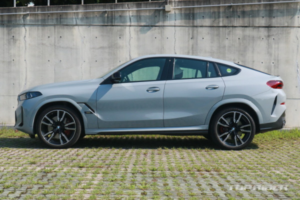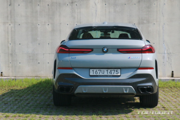 측면부는 X6의 최대 장점이다. 매끄럽게 떨어지는 루프라인은 다른 쿠페형 SUV와 비교해 자연스럽고 가장 스포츠 세단에 가깝다. 블랙 하이그로시 M 사이드미러, 22인치 휠이 제공된다. 타이어는 전륜 275/35R22 후륜 315/30R22다. 후면부 디자인은 이전 모델과 유사하다.