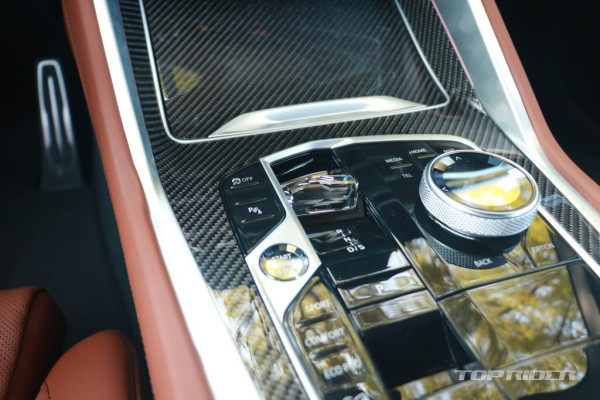 새롭게 디자인된 기어 셀렉터 레버는 크리스탈 소재로 제작됐다. 토글형 기어 셀렉터로 실내 공간이 넓어 보이는 효과를 주지만 기존 전자식 레버 특유의 ‘손맛’은 더 이상 느낄 수 없게 됐다. 조수석 대시보드 M LED 앰비언트 라이트 바, 파노라마 글라스 선루프가 탑재됐다.