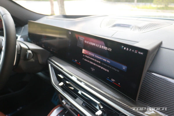 신형 X6 실내는 12.3인치 디지털 계기판과 14.9인치 터치 디스플레이가 하나로 연결된 BMW 커브드 디스플레이가 적용되면서 물리적인 버튼이 최소화됐다. 공조기와 1열 열선 및 통풍 시트 등 제어는 디스플레이로 가능하다. 단 주행모드와 같은 주요 기능은 물리 버튼이다.