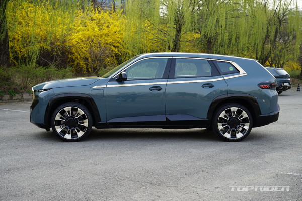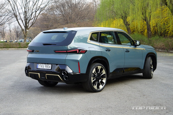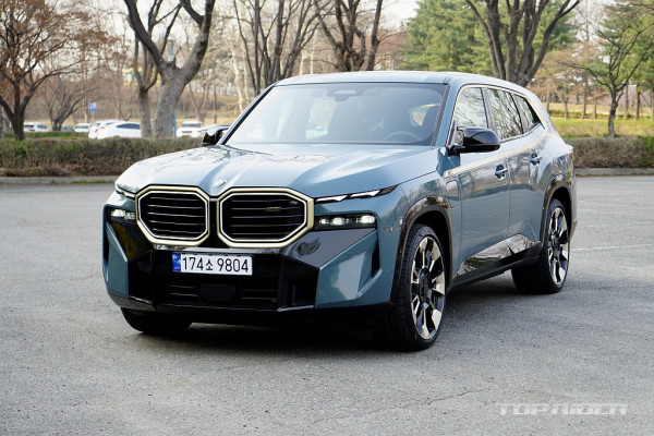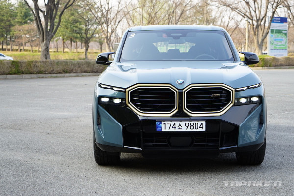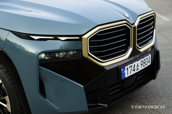 전면부는 아이코닉 글로우 조명이 적용된 거대한 키드니 그릴이 분위기를 주도한다. 그릴과 윈도우 그래픽에 적용된 골드 포인트는 과한 느낌도 든다. 미국 사양의 경우 블랙 하이그로스가 기본으로, 골드 포인트를 선택할 수 있다. 올 블랙 사양 XM 외관의 포스가 대단하다.