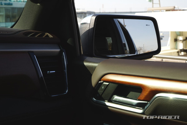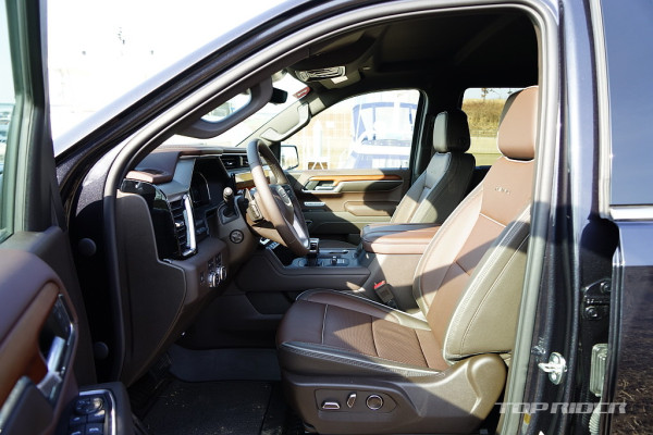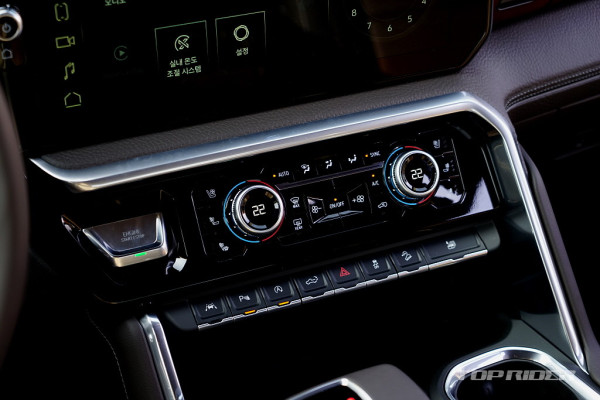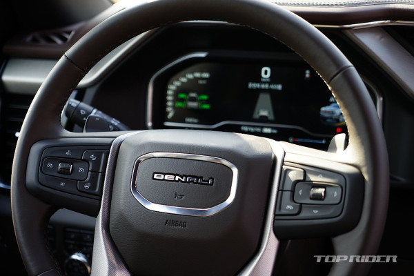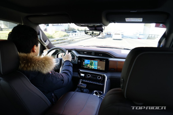 문을 열면 전동으로 펼쳐지는 사이드 스텝을 밟고 오르면 시트포지션은 의외로 세단에 가까운 안정감이 전해진다. GM 계열 대다수 대형 SUV와 픽업트럭이 유사한 시트포지션을 보이는데, 장거리 운전시 피로감을 낮춰주는 요소 중 하나다. 운전 시야는 양산차 최고 수준이다.