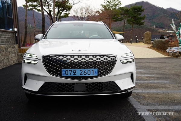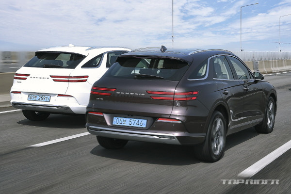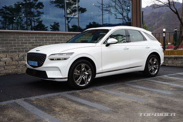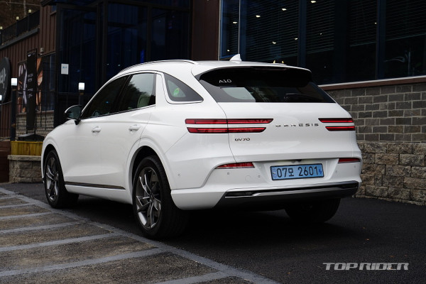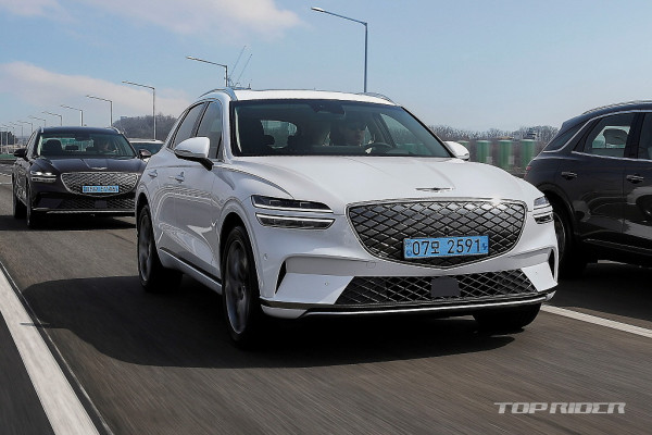 전자식 서스펜션은 90km/h 기점으로 좌우 롤을 억제하고, 스포츠 모드에서는 댐퍼가 단단해져 노면 정보를 전달하기 시작한다. 탄탄함을 기반으로 하지만 승차감을 강조한 설정이다. GV70 내연기관 모델의 서스펜션을 그대로 옮겨 무게만 증가한 것처럼 느껴진다.