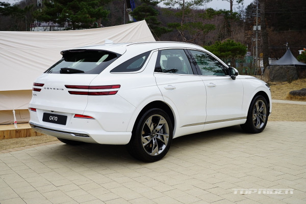 GV70의 실루엣은 기본적으로 쿠페형 SUV를 추구하고 있어 젊고 스포티한 감각이 강하다. 전장 4715mm, 전폭 1910mm, 전고 1630mm, 휠베이스 2875mm의 차체는 BMW X3나 벤츠 GLC와 유사한 크기다. 운전과 주차, 실내 거주성을 함께 만족하는 적절한 구성이다.