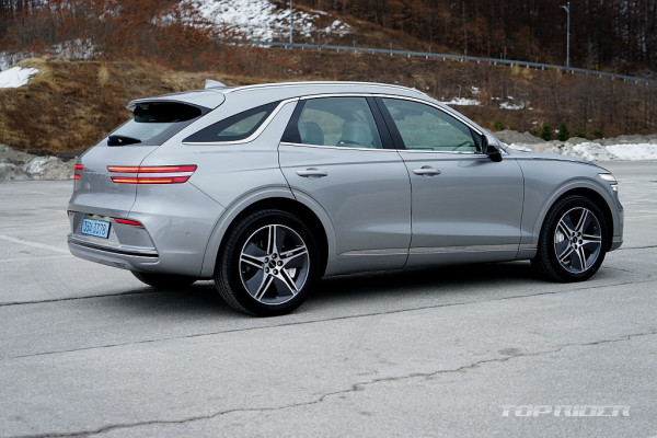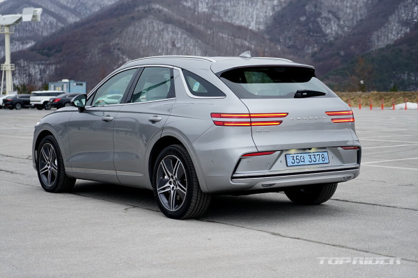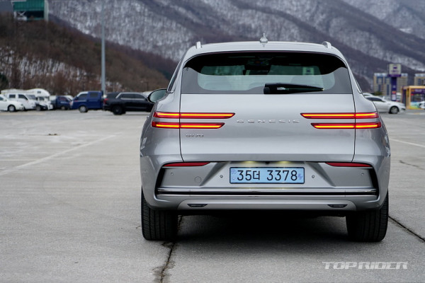 전체적인 외관 디자인은 전기차임을 내세우지 않는 분위기다. 새로운 20인치 휠의 디자인도 그렇다. 다만 휠 내부가 터빈형 디자인인데, 좌우의 방향성이 다른 점은 아쉬운 부분이다. 특히 제네시스 전기차의 후면 범퍼 디자인은 여전히 갈피를 잡지 못하고 있다. 종합적인 디자인은 좋다.