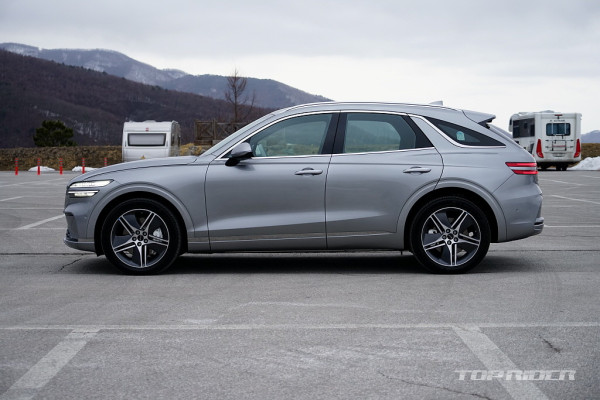 굽은 길에서의 거동은 이젠 GV70 전동화 모델 대비 확연히 개선됐다. 이제는 롤과 피칭을 상당히 제어해 안정적인 거동을 돕는다. 다만 한계 주행에서는 전륜 타이어 그립이 아쉬운데, 출고용 타이어의 그립이 차의 성능을 소화하지 못한다. 주행감각은 GV70 내연기관이 아직은 앞선다.