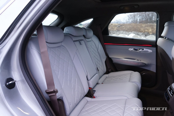 정숙성은 상당히 우수한 편으로, 구동계나 공조장치의 소음도 효과적으로 억제했다. G80 전동화 부분변경 만큼은 아니나 동급 전기차 중에서는 우수한 편에 속한다. 이같은 정숙성은 고속주행에서도 이어진다. 컴포트 모드 기준 고속주행시 가감속과 움직임은 부드럽고 점진적인 특성이다.