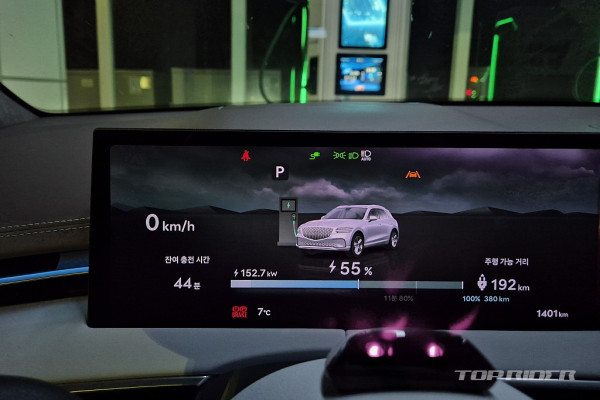 충전속도는 800V 시스템을 지원해 제원상 350kW 충전기로 10->80%까지 19분이다. 실제 속도는 외기 영상 7도 기준 200kW 충전기에서 152kW, 100kW 충전기에서 64kW 정도 나온다. 2024년 고성능 충전 인프라가 늘어났는데, 올해부터는 급속충전 속도가 중요한 지표가 될 전망이다.