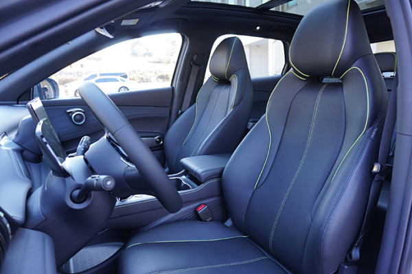 인테리어는 그래픽상으로 도어 트림 손잡이 등 원을 주제로 하고 있다. 특이한 디자인은 아니지만, 대시보드와 도어 트림 등 대형 부품의 몰딩, 버튼의 표면 처리와 질감, 작동 중 촉감 등이 수준급이다. 기대 이상이다. 볼프강 에거 팀에 아우디 출신이 많은 것 같다. 센터패시아에 90도로 회전시킬 수 있는 디스플레이가 중심이다. 그것만으로는 테슬라를 떠 올릴 수도 있다. 그런데 D컷 스티어링 휠 앞에 자그마한 디스플레이가 하나 더 있다. 주행에 필요한 정보만 표시한다.