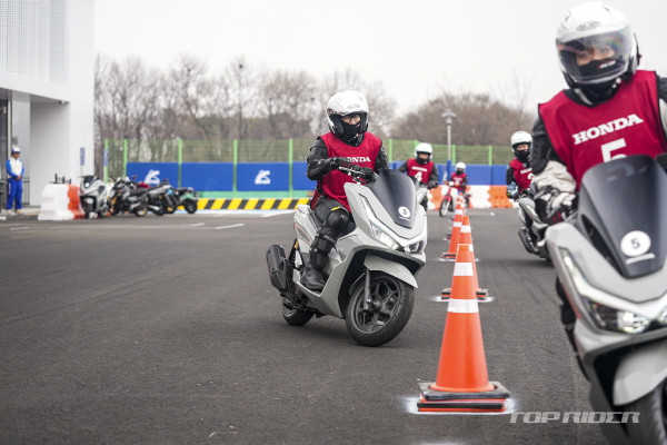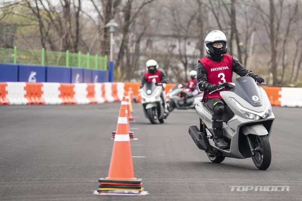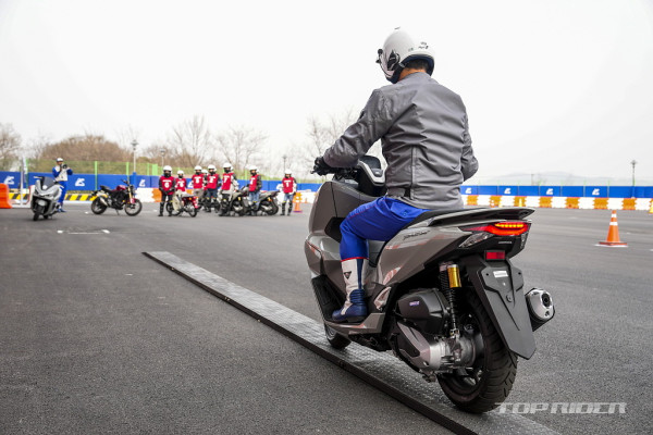 오후부터는 바이크 시동이 꺼지는 시간이 없을 정도로 계속 탔다. 당일 교육은 미디어 대상으로 비기너 스쿠터에 타운 라이더 일부 과정을 추가해, 기본적인 코스 슬라럼 외에 급제동, 파이론 슬라럼, 옵셋 슬라럼, 저속 밸런스를 빠르게 진행하는 방식으로 진행돼 체력이 방전될 정도였다.
