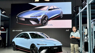 노을빛이 드리운 HMG 드라이빙 익스피리언스 센터 트랙 위에서 아이오닉 6 N이 고요한 긴장감 속에 출발을 기다리고 있다. (현대자동차) [오토…