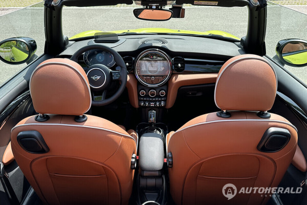 미니 쿠퍼 S 컨버터블 실내는 기본 장착되는 8.8인치 센터 디스플레이로 고급스러운 분위기를 연출한다. 또 디스플레이 외곽으로 피아노 블랙 하이글로스 소재로 마감된 디자인은 군더더기 없는 깔끔함을 전달한다.