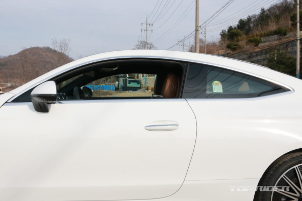 시승차는 누적 주행거리 200km도 넘지 않았으나, 헤드램프 내부에 습기가 찼다. 최근 헤드램프 내부 습기는 결함이 아니라는 분위기지만, 차주 입장에서는 속상할 수 있겠다. 프레임리스 도어가 적용됐지만, 이전 E클래스 쿠페와 다르게 2열 창문이 고정형인 부분도 아쉽다.