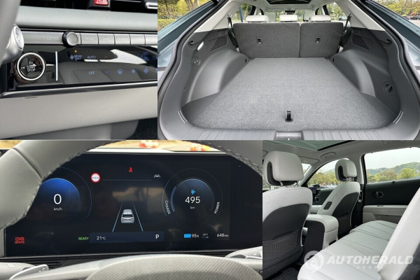 이 밖에 아이오닉 5 달리기 성능은 현대차그룹 전용 전기차 특유의 하체에 쏠린 무게 중심이 고스란히 느껴지는 주행감을 나타낸다. 이는 중고속과 코너 구간에선 상대적으로 안정적인 느낌을 연출하고 저속에선 전기 모터의 강력한 토크로 인해 불편함을 찾을 수 없다.