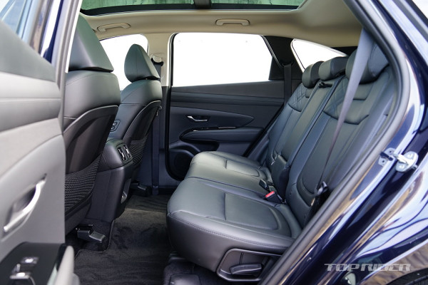 중형 SUV에 가까운 여유로운 실내공간은 투싼의 강점 중 하나다. 특히 2열 시트포지션이 좋은 편이고 리클라이닝 범위가 넓어 쓰임이 좋다. 국내 모델은 유럽형과 달리 휠베이스가 75mm 길어진 북미형 롱보디가 기본이다. 스포티지와는 휠베이스와 실내공간이 동일하다.