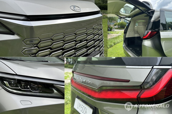 LM 디자인은 먼저 기존 스핀들 그릴로 상징되던 렉서스 디자인 정체성의 변화를 느낄 수 있다. 전면부에는 심리스 타입 그릴 탑재로 더욱 스타일리쉬하면서 공기역학적인 모습을 전달하고 헤드램프가 포함된 상단부는 크롬 마감으로 강인하면서도 고급스러운 이미지를 연출한다.