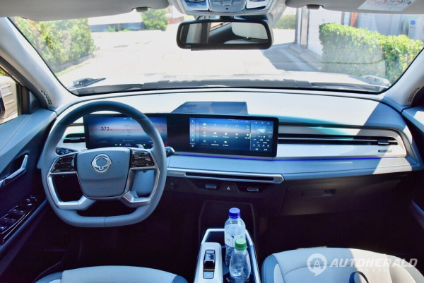 토레스 EVX의 출발 전 주행 가능 거리는 437km. 73.4kWh 리튬인산철 블레이드 배터리를 쓰는 토레스 EVX의 인증 주행거리(433km)보다 길게 표시돼 있었다. 실제로는 이보다 더 달린다. 200km 남짓 거리를 달렸는데도 남은 주행 거리가 300km였다.